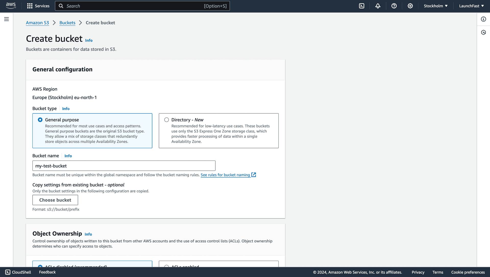 Enter a repository name, say my-custom-bucket-0 for example. Copy the bucket name to be used as AWS_S3_BUCKET_NAME in your application.