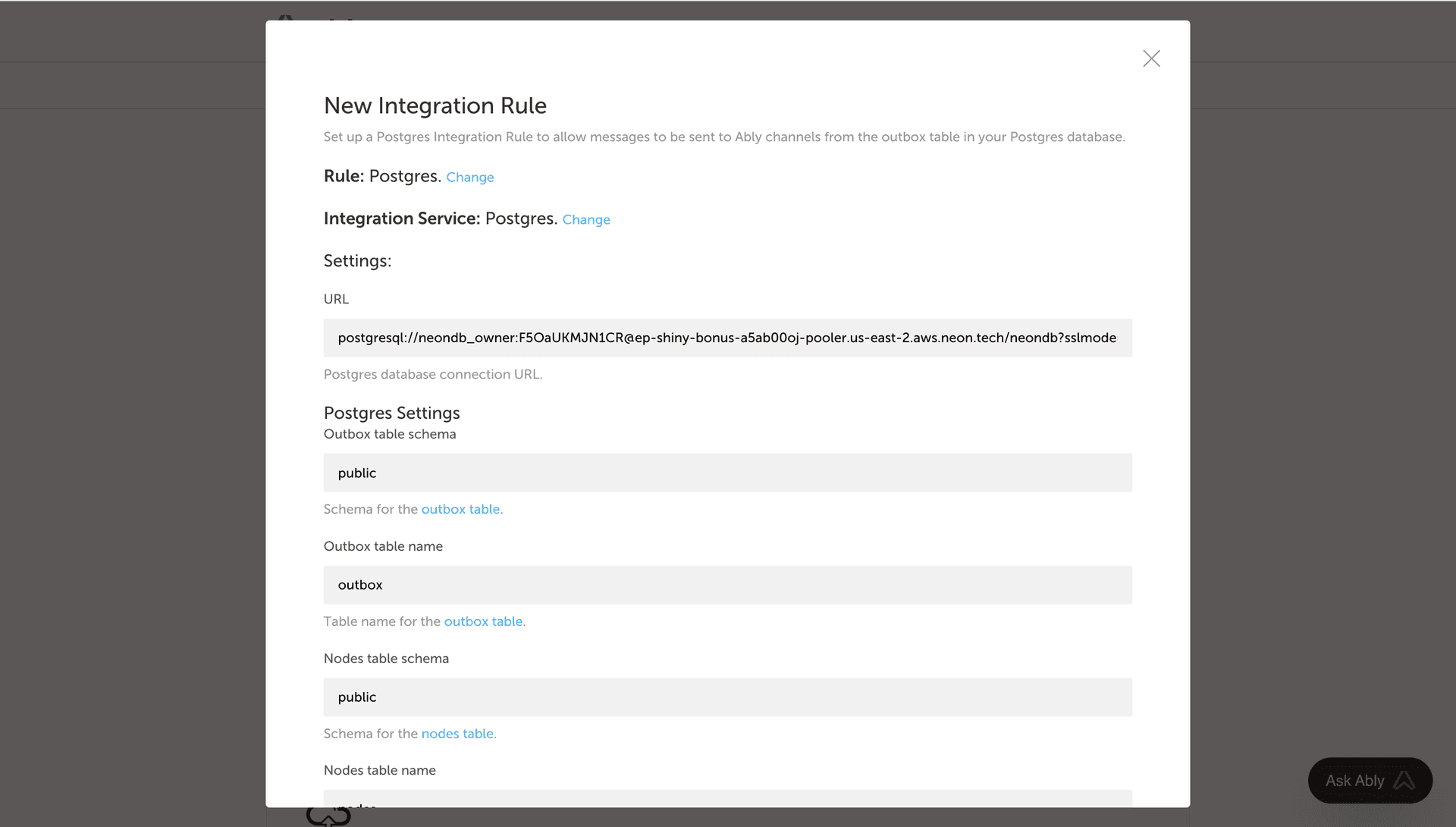 Set up Ably LiveSync with Neon Postgres